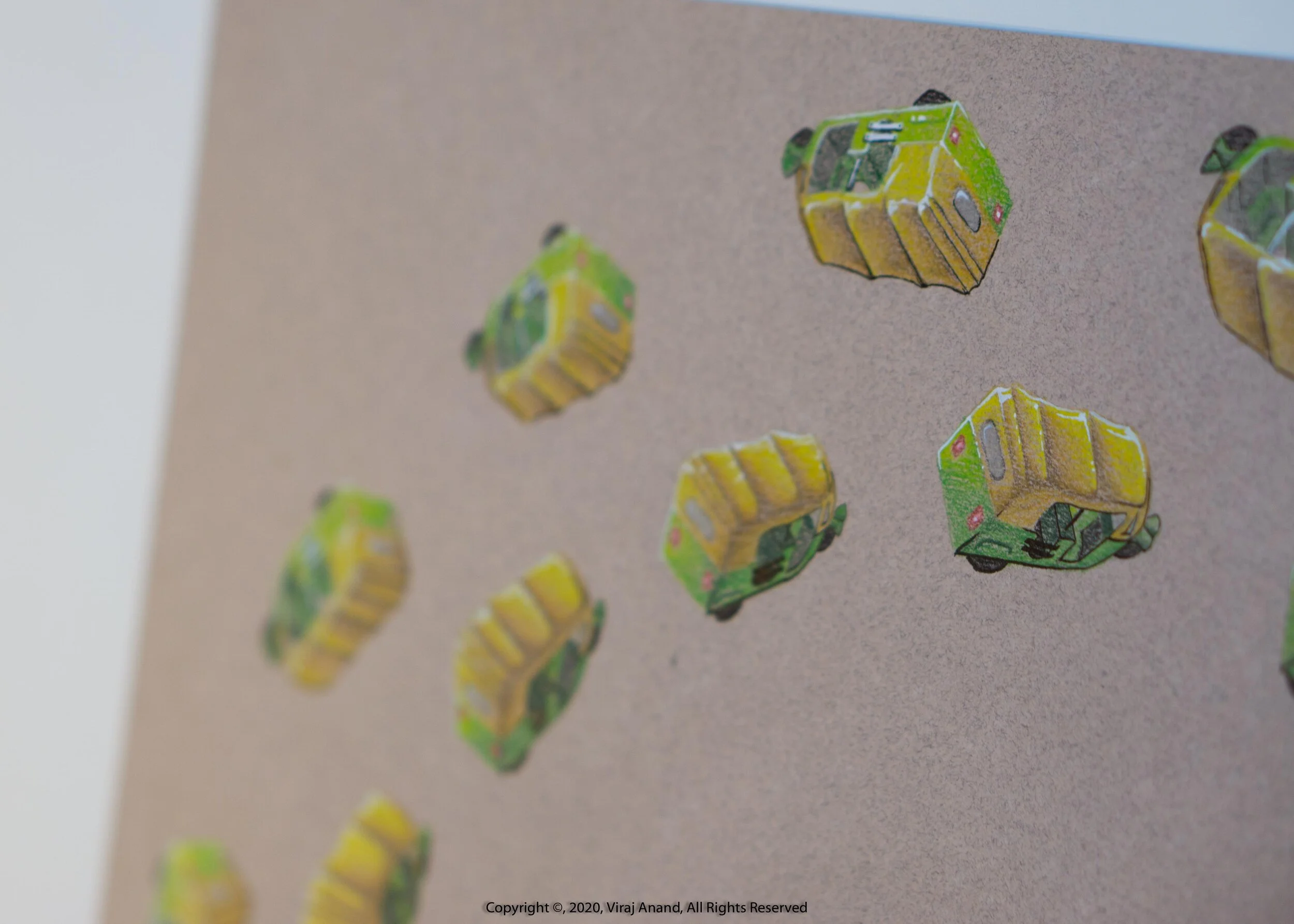 Insects swarm the street-lights throughout the night fooled into thinking it is the sun, it guides them to their destination. Relative to them, the streetlight is as eternal as the sun or the moon, they reach the end of their life before they reach the end of their journey. Living highly urbanised lives, the red, yellow, and green give them the illusion of traversing new grounds, much like these creatures going to circles.